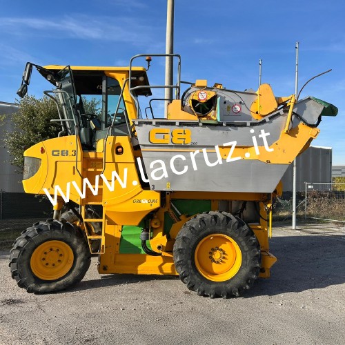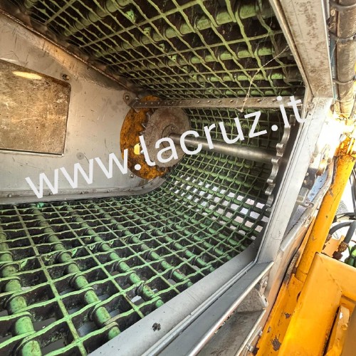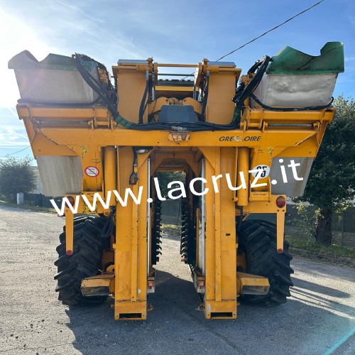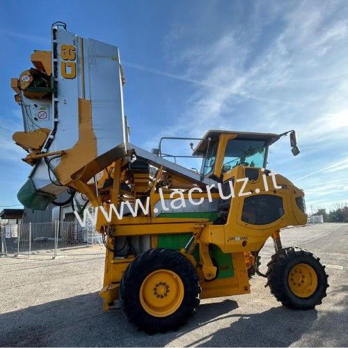Macchina equipaggiata con due aspiratori inferiori, due diraspatori Cleantech, cabina climatizzata e due telecamere. 11+11 scuotitori per lato e vasche con coclee.